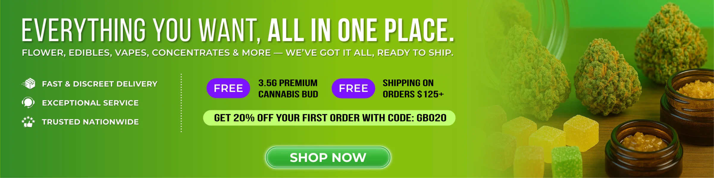 We are the #1 Online Supplier of Cannabis related products in The United States. Get Bud Online provides you with the best quality marijuana strains, cannabis concentrates, weed edibles, THC vapes, shrooms & accessories available. We are more than just an online dispensary, we are also producers. We grow our own cannabis, make our own concentrates and edibles to guarantee the safety, quality and potency of our products. Cheap weed, high quality.