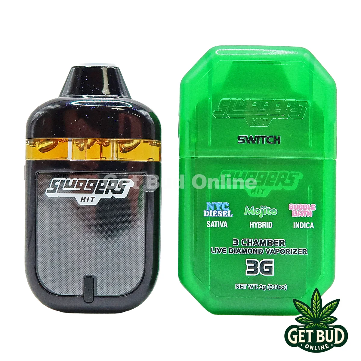 Sluggers Hit Switch 3g DIsposable Vape – NYC Diesel + Mojito + Bubble Bath