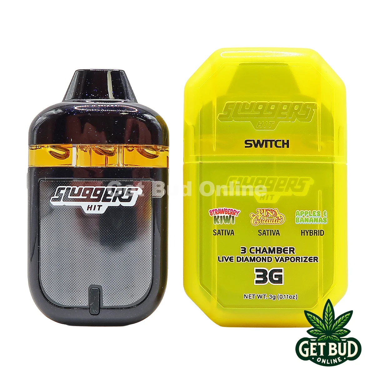 Sluggers Hit Switch 3g DIsposable Vape – Strawberry Kiwi + Pina Colada + Apples & Bananas