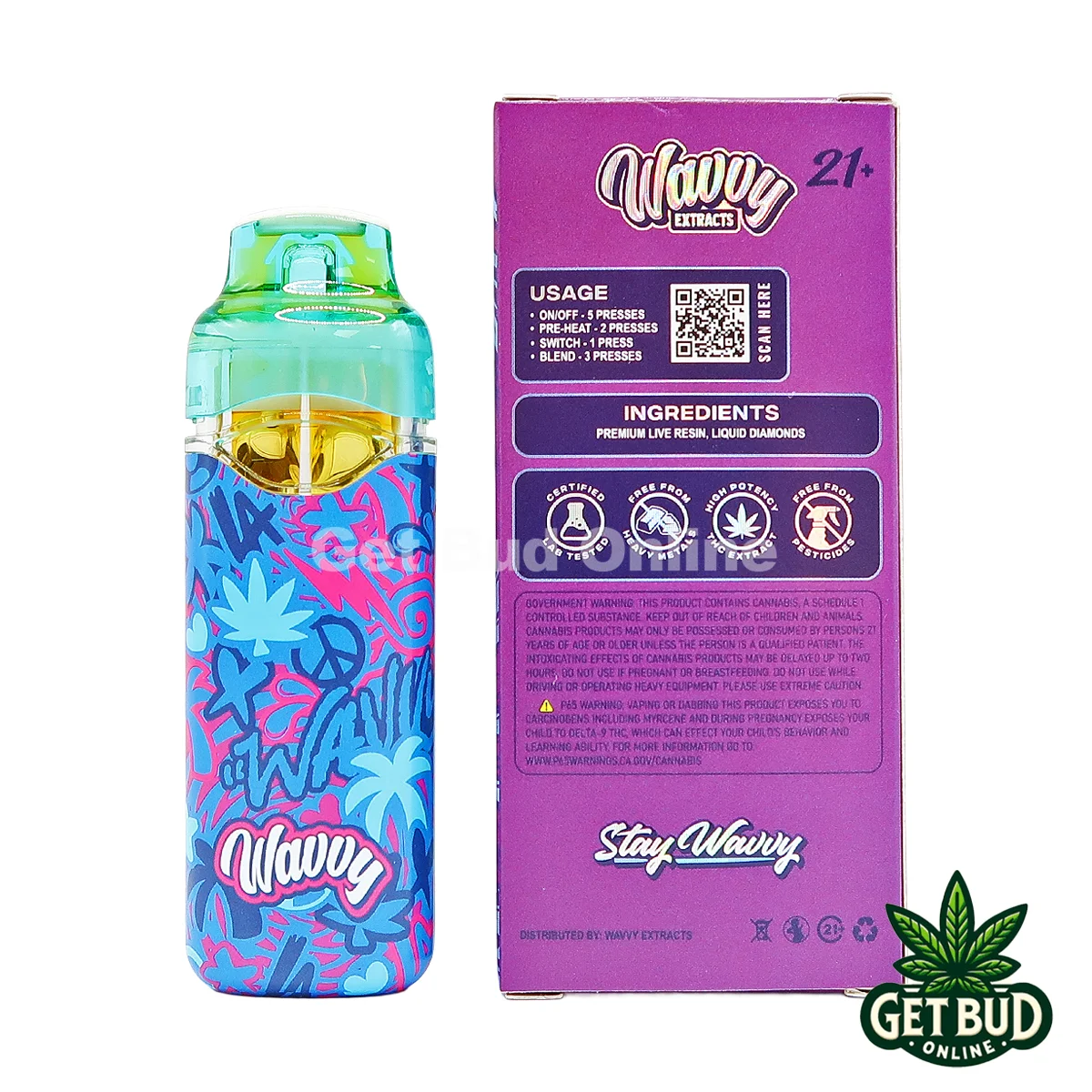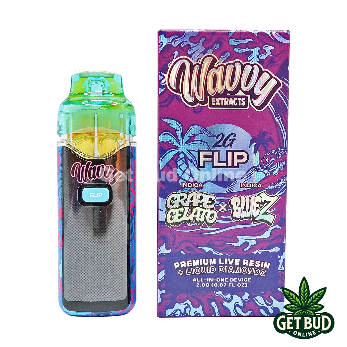 Wavvy Flip 2g Live Resin + Liquid Diamond Disposable Vape – Grape Gelato + Blue Z